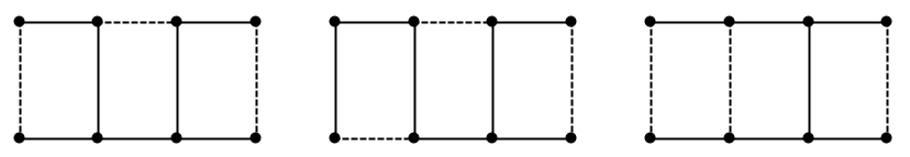 In fact, just in three cases three negative edges occur, and for other cases by switching at some vertices the number of negative edges declines. The possible cases are listed in Fig. ¿fig:twocases?, in which dashed lines denote negative edges.